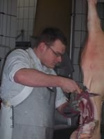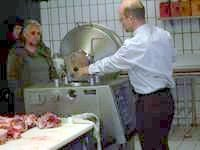 Extrem wichtig ist Frank und Doris Siegle die eigene ständige Weiterbildung und auch die Fortbildung und Förderung des Personals, denn im Fleischerfachgeschäft Siegle ist ausschließlich Fachpersonal beschäftigt, was natürlich von der Schlachtung bis zum Verkauf ein extrem hohes Niveau an Fachkompetenz und durchgängige Sicherheit für den Kunden bedeutet.Frank Siegle erklärte die zur Zeit für unser Fleischerfachgeschäft anstehende Zertifizierung als EU-Schlachtbetrieb und die dafür notwendigen baulichen und hygienischen Voraussetzungen, die für viele Kollegenbetriebe in diesem Jahr das Ende der Selbstschlachtung bedeuten könnten. | |